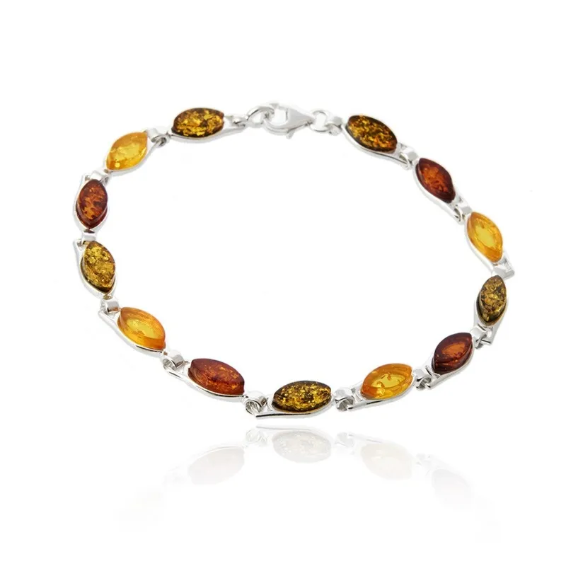 Subtelna bransoletka srebrna z kolorowym bursztynem