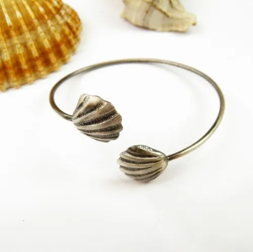 Bransoletka srebrna z muszelkami II – Szara elegancja z nutą morskiej nostalgii Wprowadź do swojej biżuteryjnej kolekcji odrobinę morskiej poezji – delikatną, a zarazem wyrazistą bransoletkę srebrną z muszelkami. Wykonana ze srebra próby 925, zachwyca prostotą formy inspirowanej naturą oraz szlachetnym wykończeniem oksydą w odcieniu grafitowej szarości, która dodaje głębi i charakteru. Ta wyjątkowa bransoletka składa się z otwartego, elastycznego drutu zakończonego dwoma subtelnymi muszelkami (każda o wymiarach 1,5 cm x 1,5 cm). Ich faktura i forma zostały zaprojektowane z niezwykłą precyzją, oddając piękno morskich skarbów. Uniwersalny rozmiar sprawia, że bransoletka idealnie dopasowuje się do każdego nadgarstka, a jej satynowane, matowe wykończenie dodaje jej elegancji i lekkości. Waga: 8 g To biżuteria, która sprawdzi się nie tylko na co dzień, ale także jako subtelny akcent do letnich i wieczorowych stylizacji.
