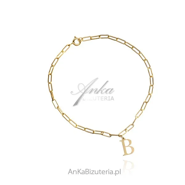 Bransoletka srebrna pozłacana na łańcuszku unions - z literką b