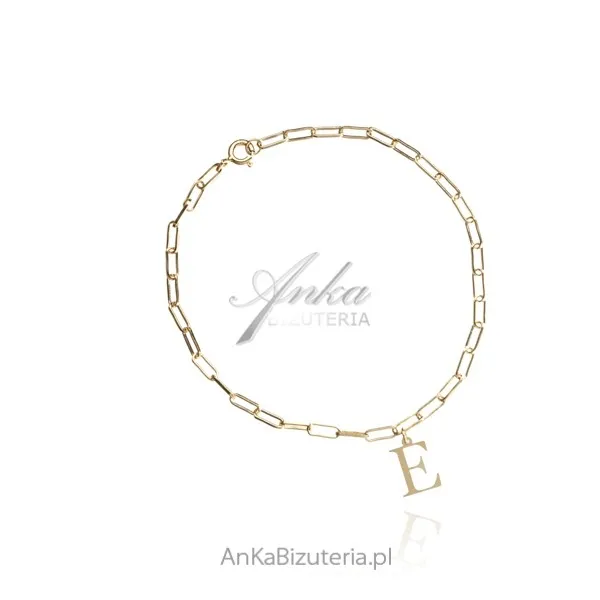 Bransoletka srebrna pozłacana na łańcuszku unions - z literką e