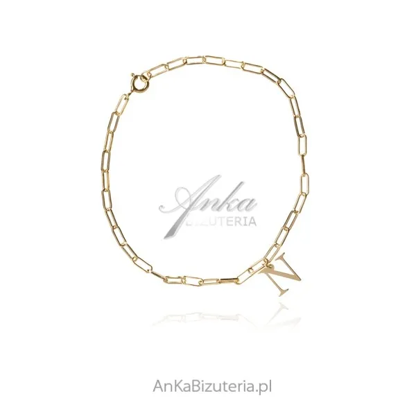 Bransoletka srebrna pozłacana na łańcuszku unions - z literką k