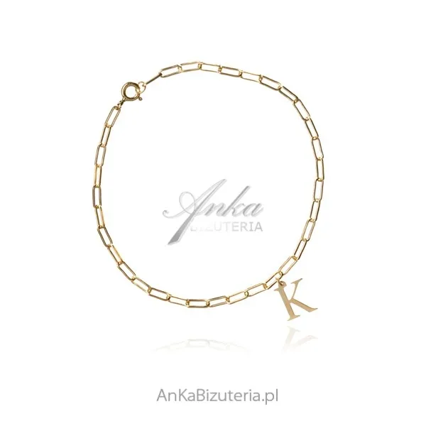 Bransoletka srebrna pozłacana na łańcuszku unions - z literką k