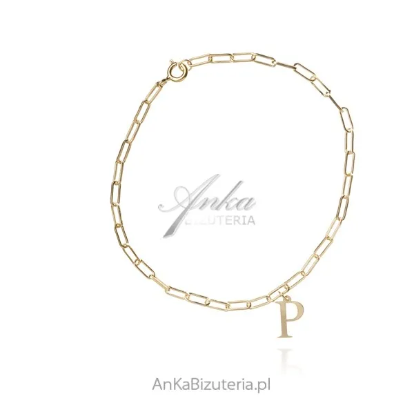 Bransoletka srebrna pozłacana na łańcuszku unions - z literką p