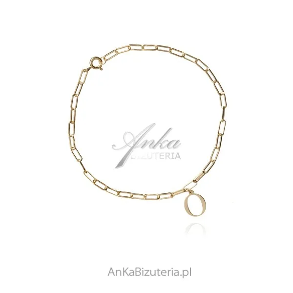 Bransoletka srebrna pozłacana na łańcuszku unions - z literką o