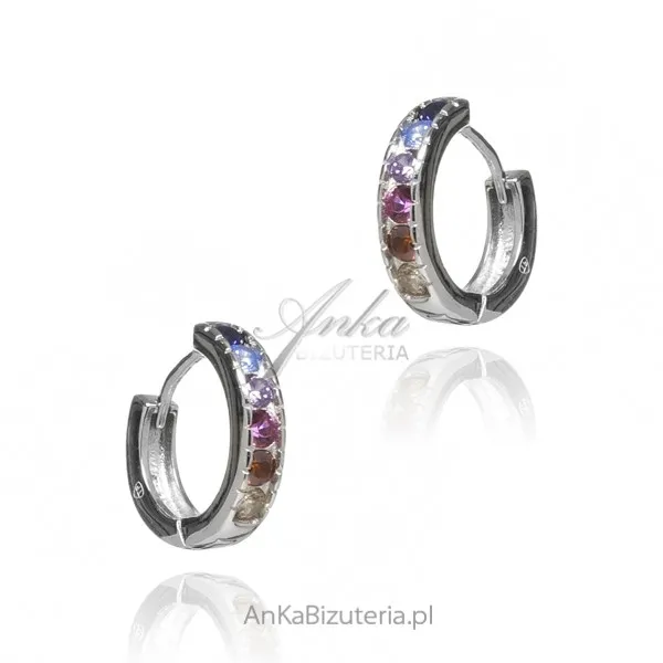 Kolczyki srebrne kółka z kolorowymi cyrkoniami