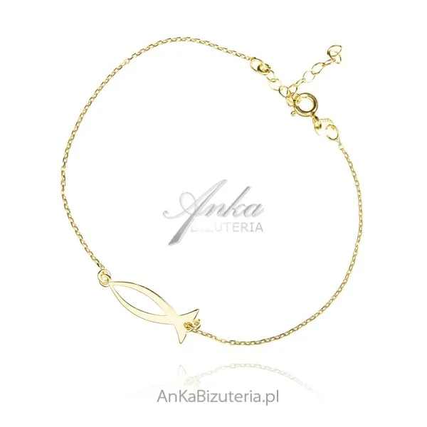 Bransoletka srebrna pozłacana ze znakiem rybki