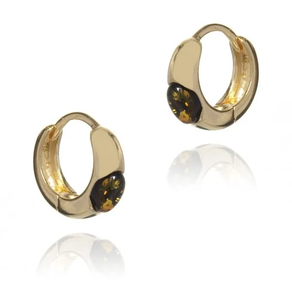 Kolczyki srebrne pozłacane kółka z wiśniowym bursztynem z łuskami