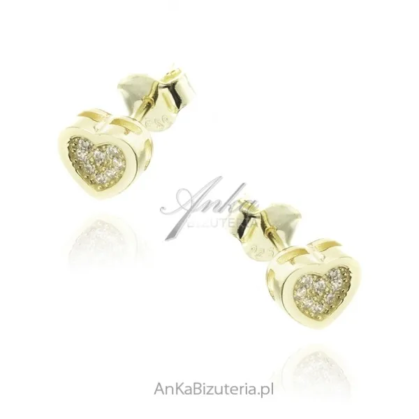 Srebrne kolczyki pozłacane z cyrkoniami w kształcie serduszka