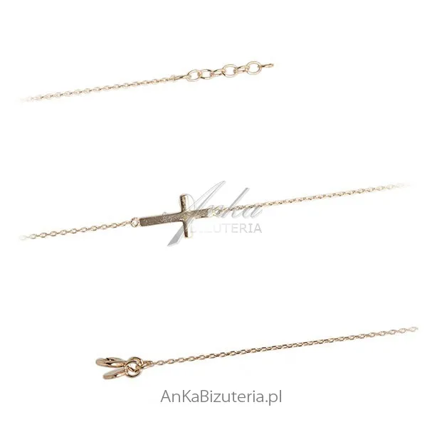 Bransoletka srebrna pozłacana z krzyżykiem - najlepsza jakość!