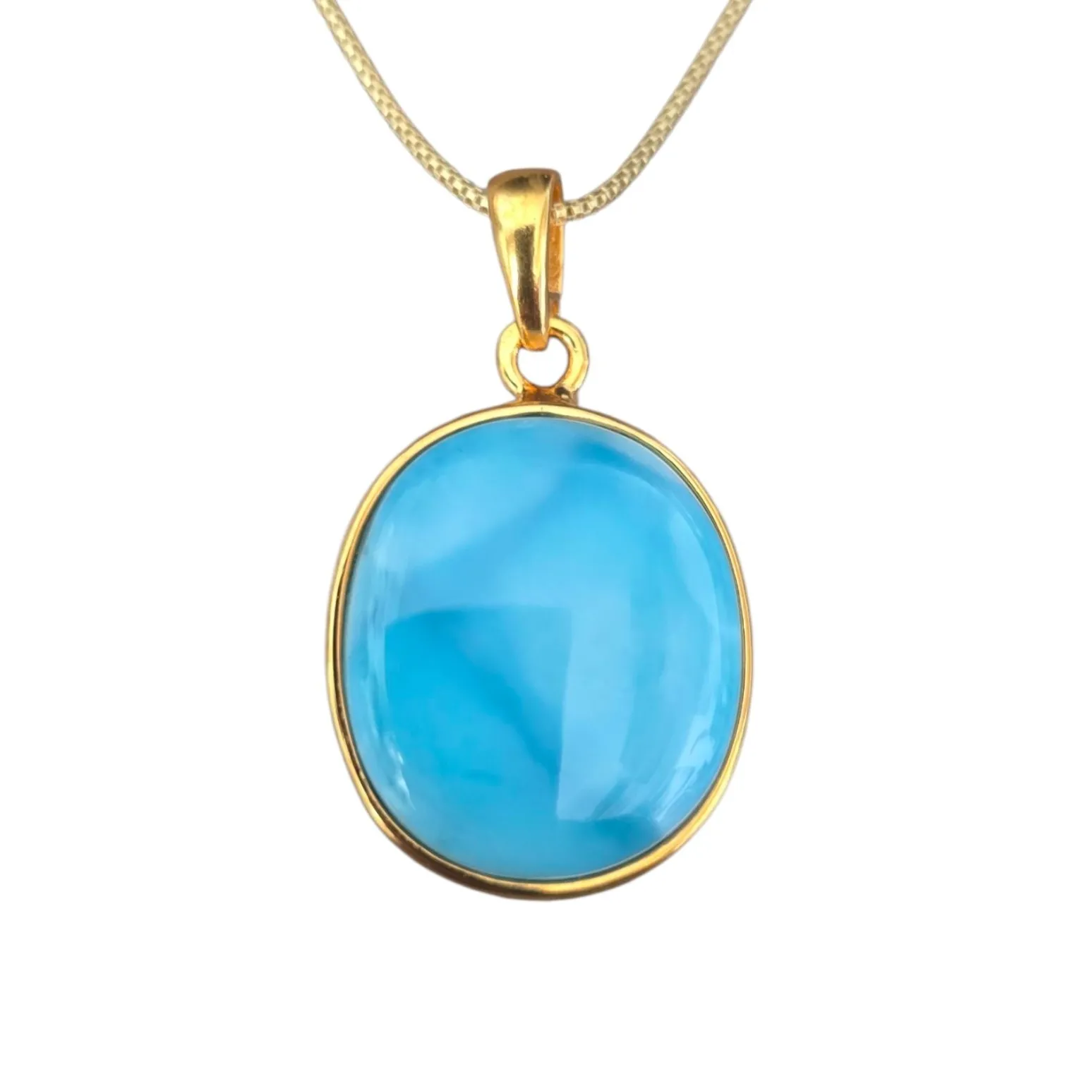 Piękna zawieszka srebrna pozłacana z larimarem "luz i cisza"