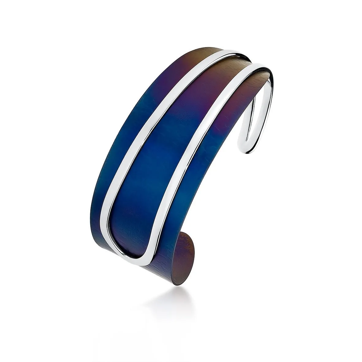 nr. prod.: 37.51br.07280272br.21852 Bransoletka z tytanu i srebra Srebro próba: 925 Uszlachetnienie srebra: pozłacana 24 k złotem Materiał: tytan, srebro Waga bransoletki: 14,1 g (waga całkowita)/waga srebra 7,5 g Szerokość bransoletki: 2,7 cm Wielkość bransoletki: długość całkowita z otworem 18 cm /długość bez otworu 15 cm Polecamy kolczyki, oraz naszyjnik do kompletu do zakupienia w naszym sklepie. W naszym Sklepie – AnKa Biżuteria – biżuterię pakujemy w piękne pudełeczka wysokiej jakości! Do wytwarzania biżuterii tytanowej wykorzystuje się wiele technik min barwienia – poprzez osadzanie się tlenków na powierzchni tzw anodowanie. Tutaj w połączeniu ze srebrem tworzy niesamowitą, nowoczesną formę. Na świecie w tym w Polsce jest tylko garstka artystów która tworzy biżuterię z tytanu. Tytan ze względu na proces wydobycia i przetworzenia jest bardzo kosztowny a biżuteria powstająca z tytanu wymaga złożoności pracy i dużego zaangażowania artysty.