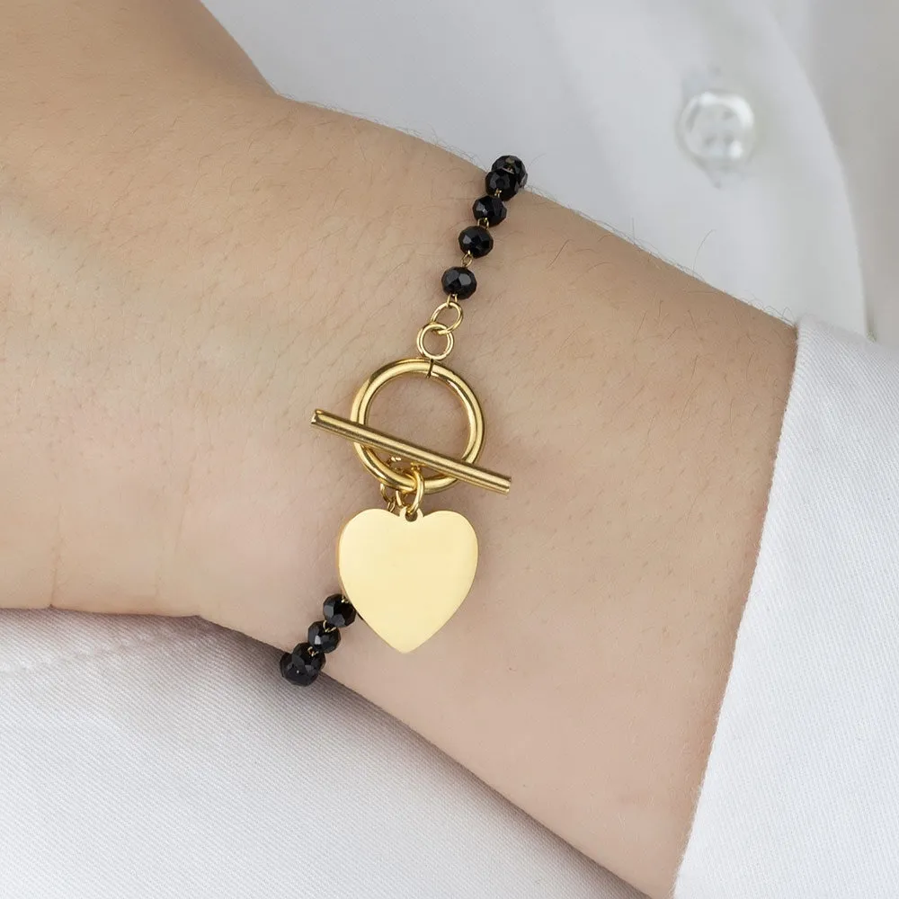 BRANSOLETKA serce STAL SZLACHETNA POZŁACANA