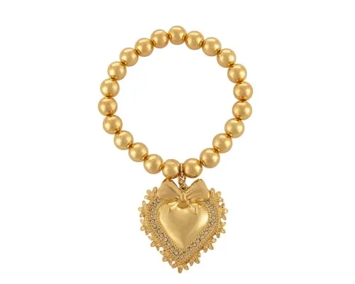 Bransoletka z pozłoconych kulek z sercem i kryształkami (B23/ZIM/117AU)