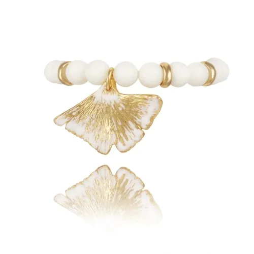 Pozłacana bransoletka z agatów Colibra by Sviatlana z kolekcji BELLA, z ręcznie malowanym, białym sercem, zdobionym kryształkami Preciosa. Bransoletka jest uniwersalna, gdyż jest na gumce. Wielkość serduszka ok 3,5cm/3,5 cm.