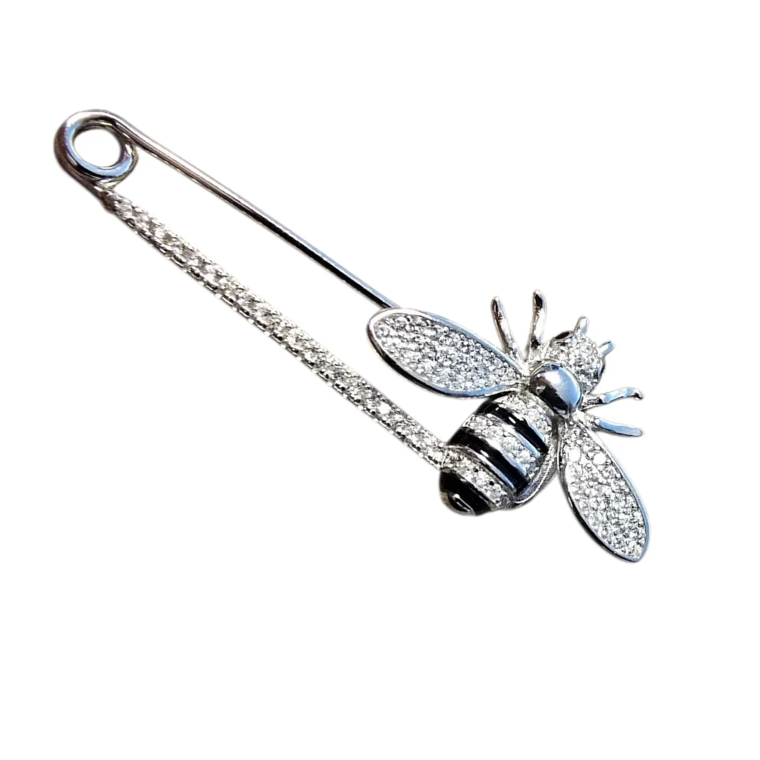 Broszka srebrna pszczółka z białymi mikrocyrkoniami