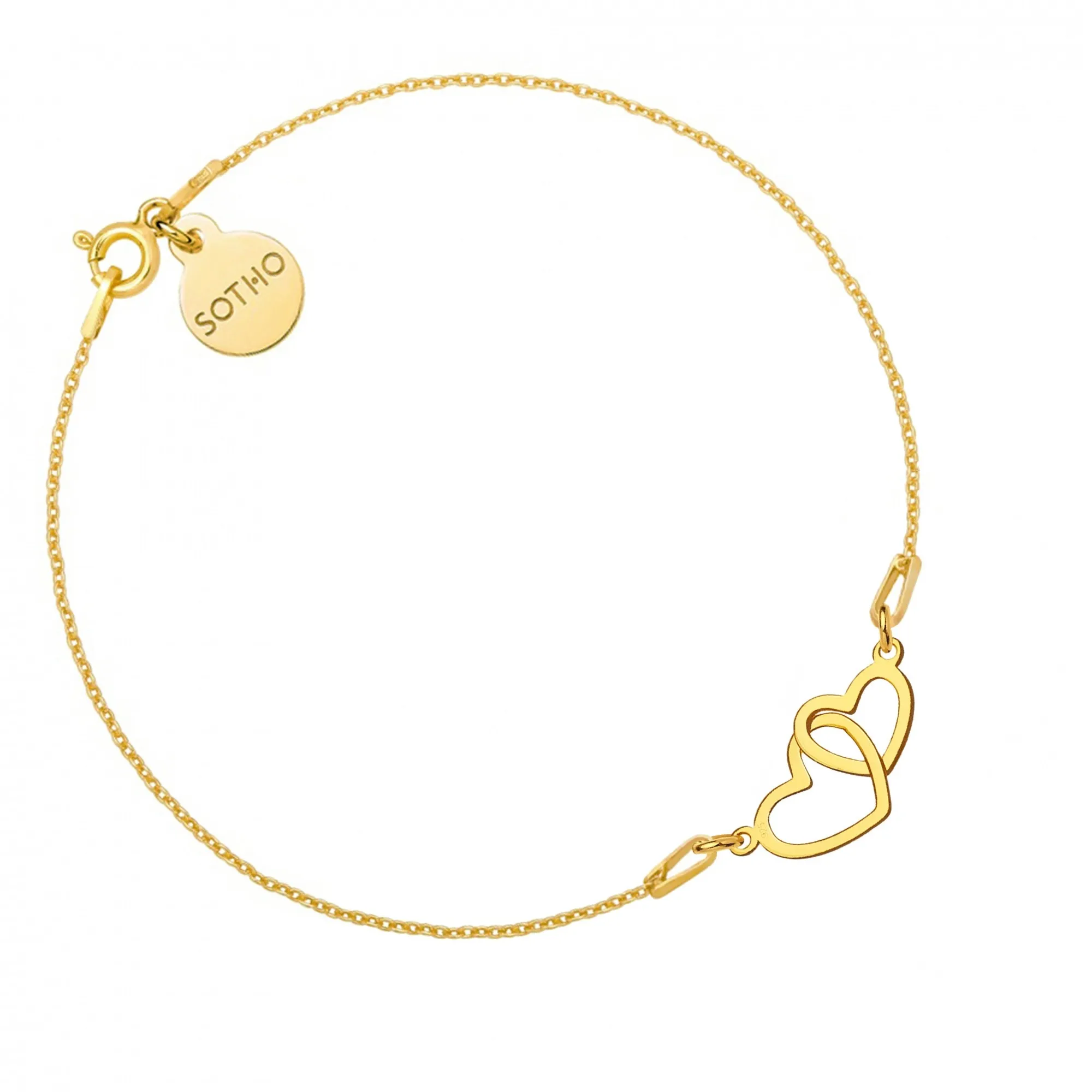 Złota bransoletka łańcuszkowa z dwoma serduszkami i zawieszką z logo marki. Całość wykonana ze srebra 925 powlekanego 24 karatowym różowym złotem. Długość bransoletki ok 17 cm Grubość łańcuszka 1 mm. Serduszka 20 mm x 11 mm Zawieszka z logo 10 mm. Zapakowany w eleganckie pudełeczko z logo marki. Posiada logowaną metkę. Istnieje możliwość zamówienia bransoletki innej długości, z innym modelem zawieszki, z kilkoma zawieszkami, na innym modelu łańcuszka, w wersji ze srebra 925 lub srebra 925 powlekanego 24 karatowym żółtym złotem, z dodatkowymi kamienieniami, perłami lub kryształami SWAROVSKI® CRYSTAL itp.