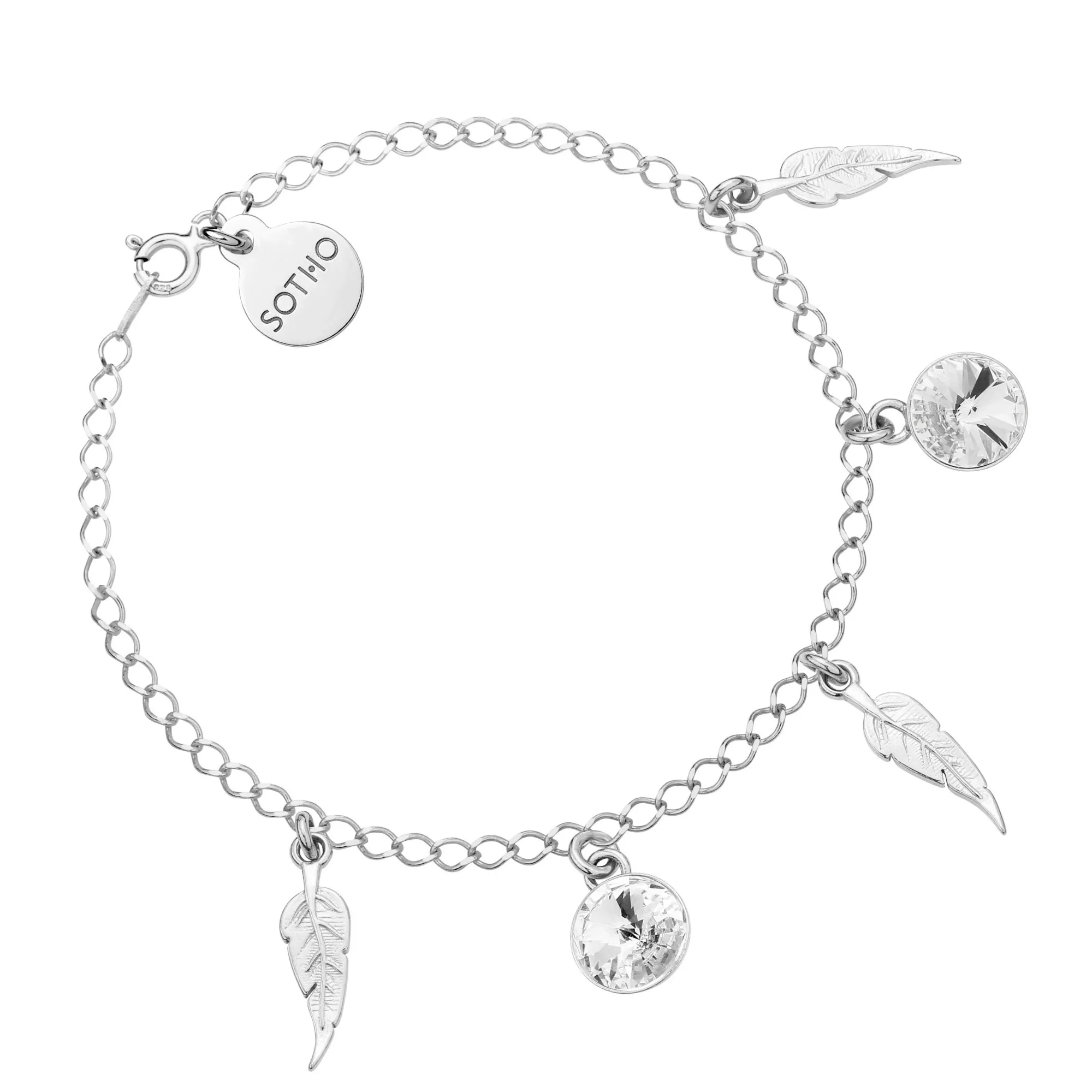 Srebrna bransoletka z piórkami i bezbarwnymi kryształami SWAROVSKI® CRYSTAL