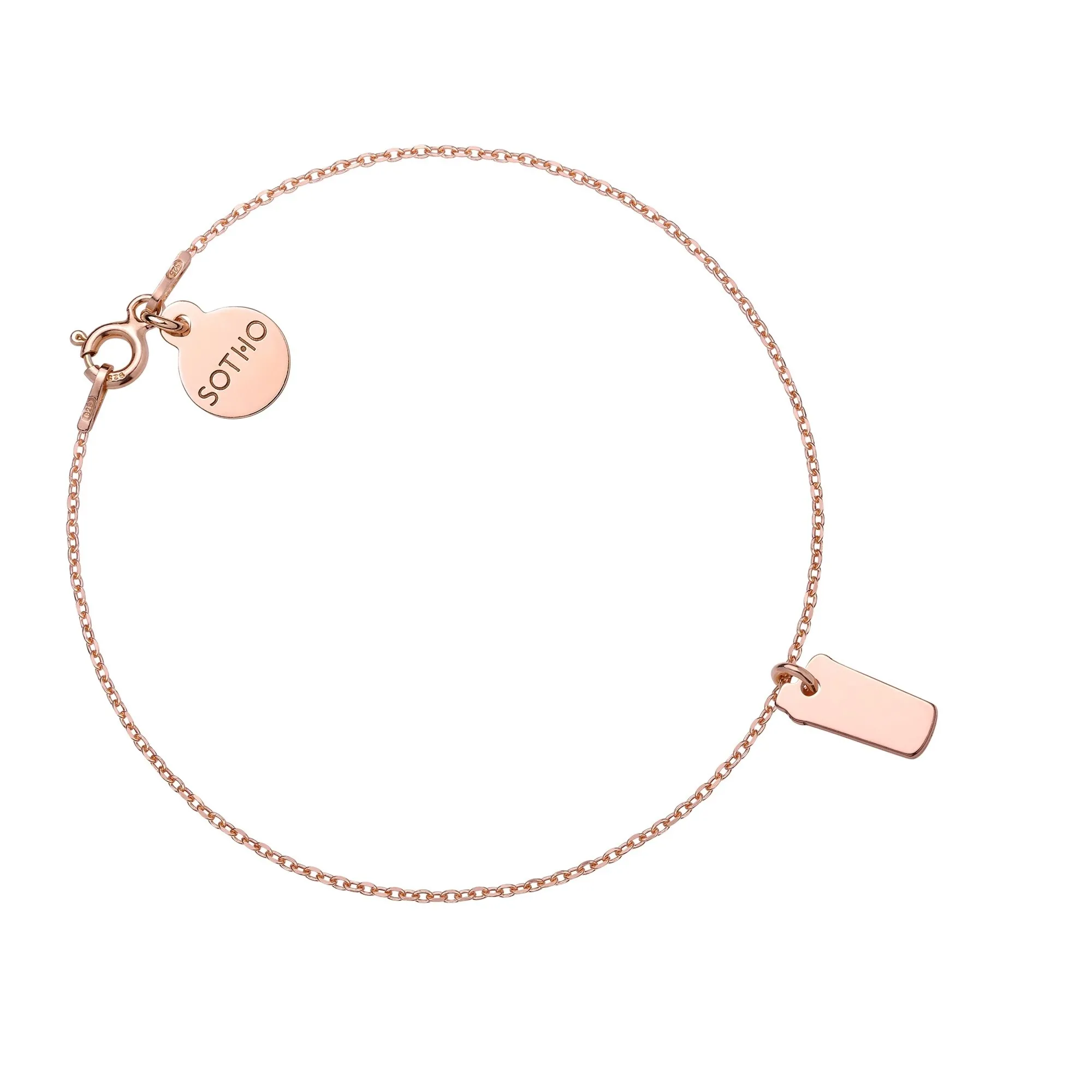 Złota bransoletka łańcuszkowa zdobiona shakerem i zawieszką z logo marki. Całość wykonana ze srebra 925 powlekanego 24 karatowym różowym złotem. Shaker posiada grawerunek z motywującym przesłaniem DRINK WATER.