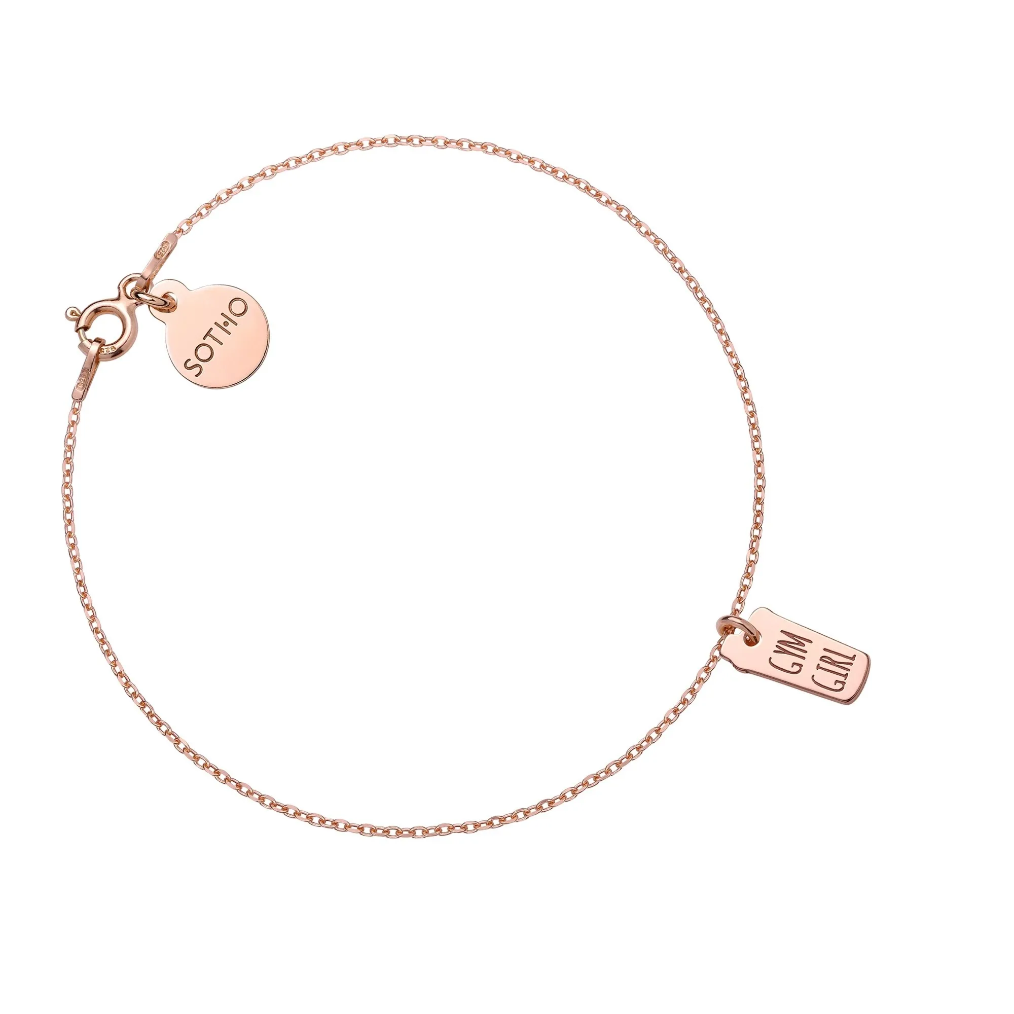 Złota bransoletka łańcuszkowa zdobiona shakerem i zawieszką z logo marki. Całość wykonana ze srebra 925 powlekanego 24 karatowym różowym złotem. Shaker posiada grawerunek z motywującym przesłaniem HEALTHY LIFE.