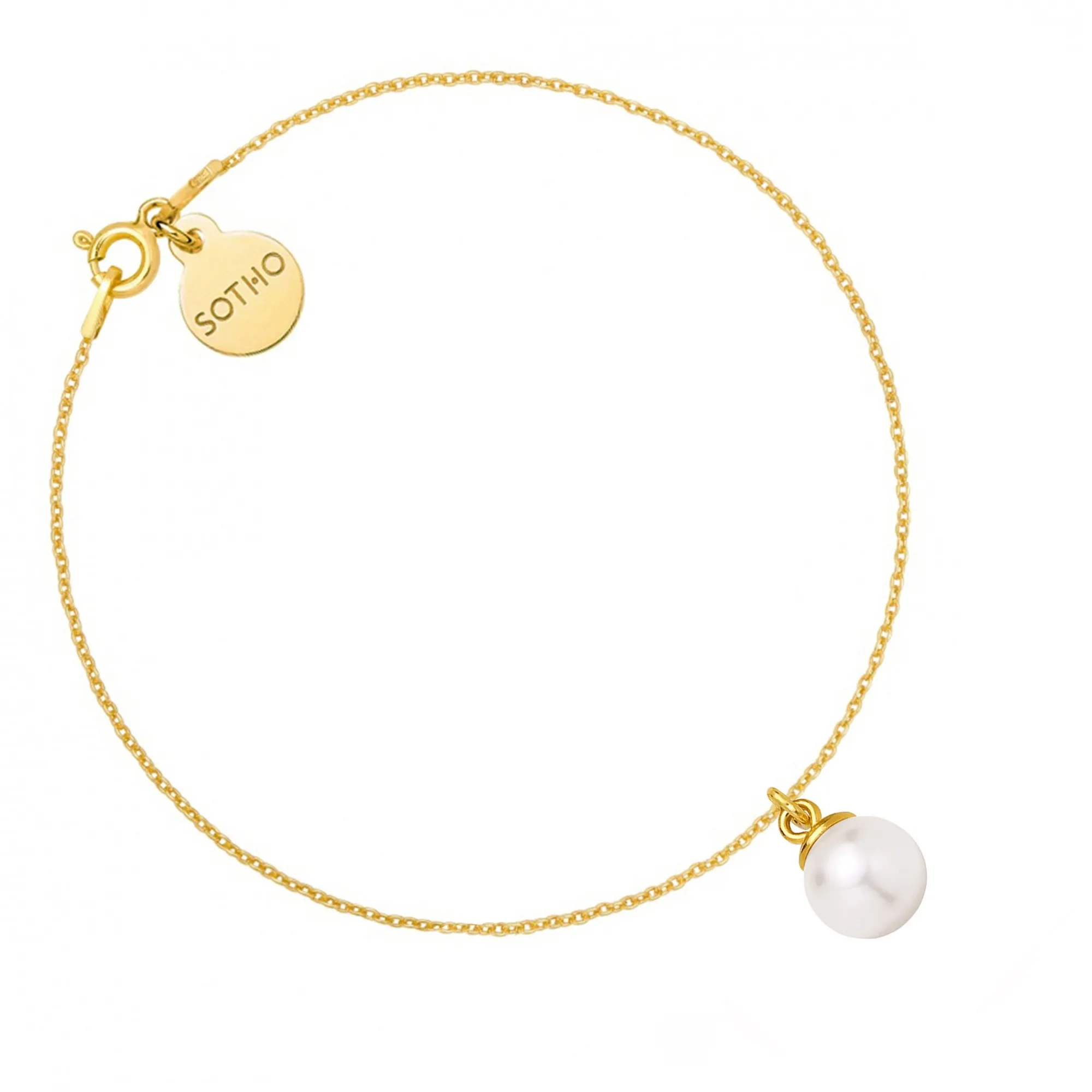 Złota bransoletka z białą perłą SWAROVSKI® CRYSTAL