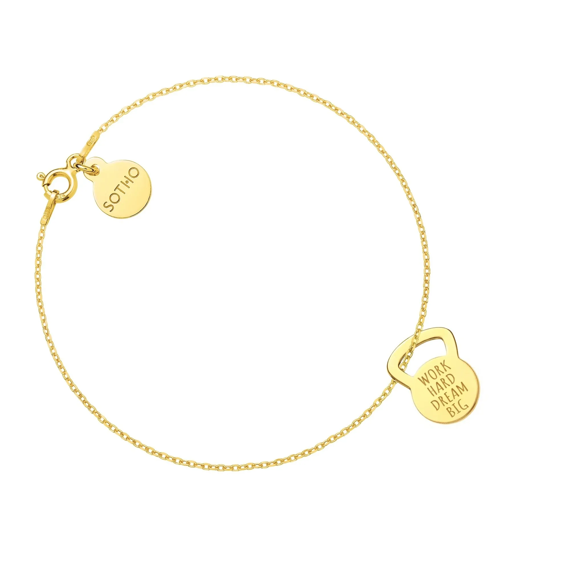 Złota bransoletka kettlebell WORK HARD DREAM BIG