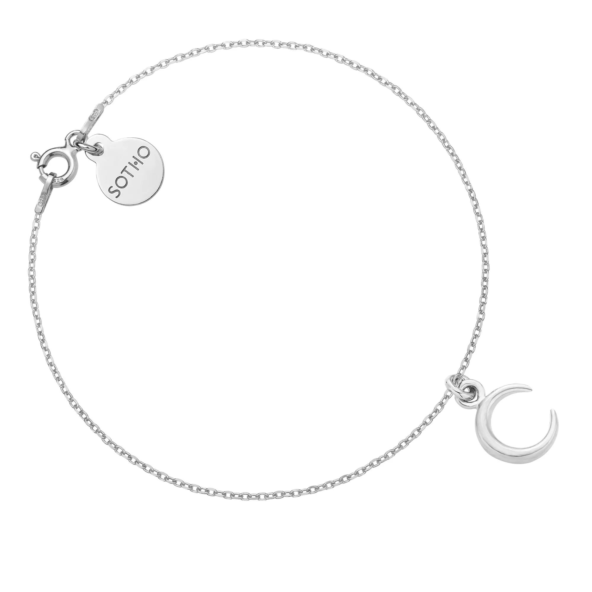 Złota bransoletka łańcuszkowa zdobiona księżycem i zawieszką z logo marki. Całość wykonana ze srebra 925 powlekanego 24 karatowym różowym złotem. Długość 18 cm. Grubość łańcuszka 1 mm. Księżyc 12,7 x 10,1 mm Zawieszka z logo 10 mm. Produkt o wadze poniżej 5 g. Zapakowany w eleganckie pudełeczko z logo marki. Posiada logowaną metkę. Istnieje możliwość zamówienia bransoletki innej długości, z innym modelem zawieszki, z kilkoma zawieszkami, na innym modelu łańcuszka, w wersji ze srebra 925 lub srebra 925 powlekanego 24 karatowym żółtym złotem, z dodatkowymi kamieniami, perłami lub kryształami SWAROVSKI® CRYSTAL itp.