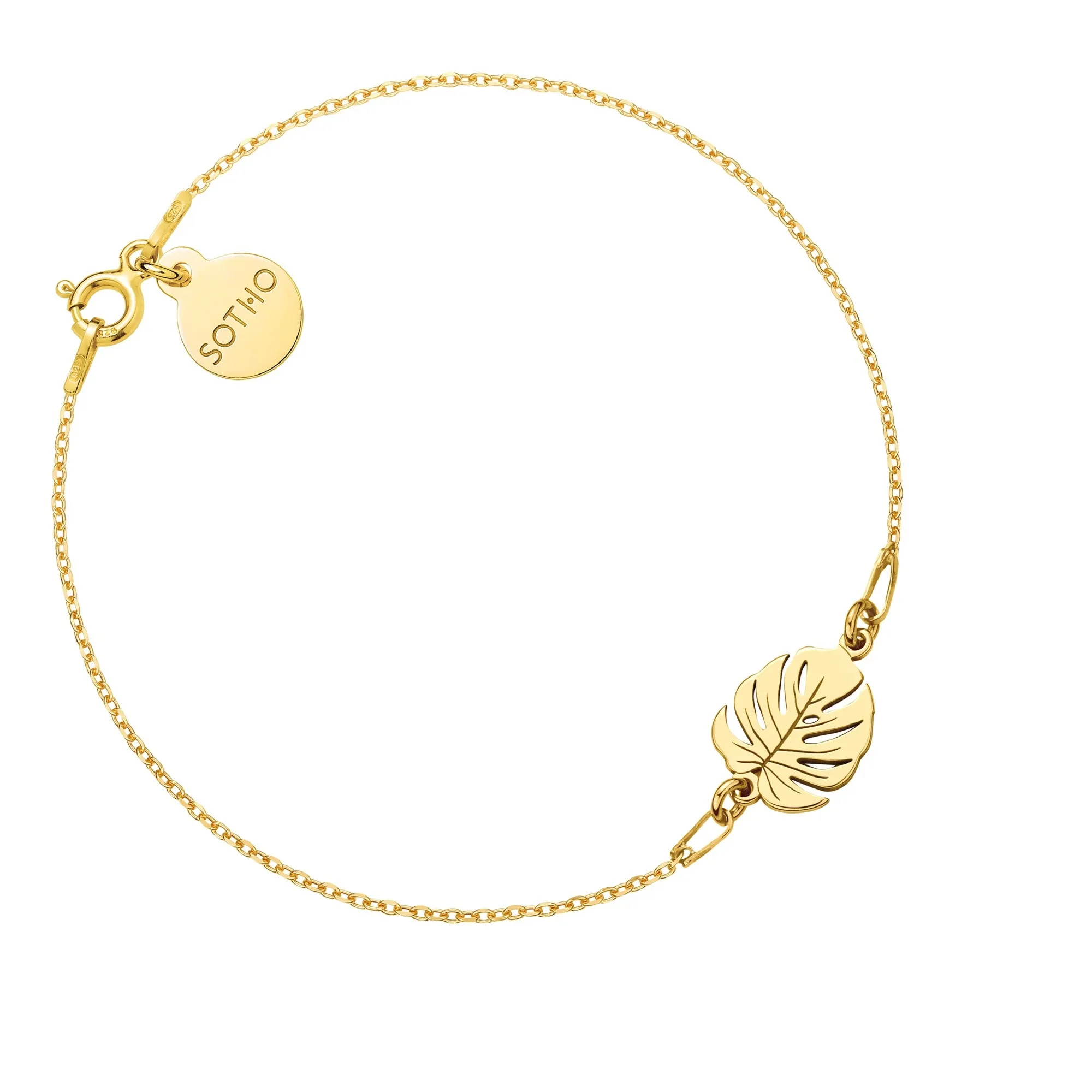 Złota bransoletka łańcuszkowa zdobiona zawieszką monsterą i zawieszką z logo marki. Całość wykonana ze srebra 925 powlekanego 24 karatowym różowym złotem. Długość bransoletki ok. 17 cm. Grubość łańcuszka 1 mm. Monstera 15 x 10 mm. Zawieszka z logo 10 mm. Produkt o wadze poniżej 5 g. Zapakowany w eleganckie pudełeczko z logo marki. Posiada logowaną metkę. Istnieje możliwość zamówienia bransoletki innej długości, z innym modelem zawieszki, z kilkoma zawieszkami, na innym modelu łańcuszka, w wersji ze srebra 925 lub srebra 925 powlekanego 24 karatowym żółtym złotem itp.