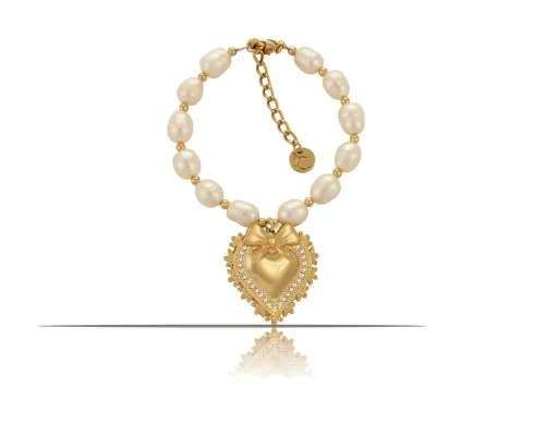 Bransoletka z pereł naturalnych z sercem i kokardką (B23/ZIM/84AU)