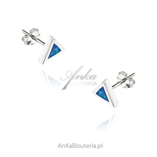 Kolczyki srebrne trójkąty z niebieskim opalem