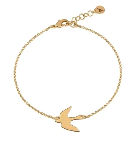 Śliczna bransoletka ze skrzydłem, którą każda kobieta powinna mieć w swojej kolekcji. Bransoletka pozłacana. Długość 17cm + przedłużka 3cm, grubość 0,1cm, skrzydło 2,3cm x 0,7 cm.