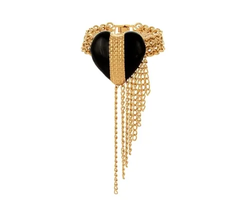Pozłacana bransoletka z sercem, z wiszącymi z obu stron łańcuszkami. Długość bransoletki 18 cm + 4 cm przedłużki. Wymiary serca 3cm/ 3cm. Długość ozdoby ok 9 cm.