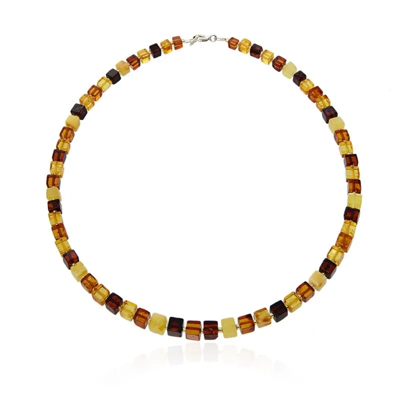 Naszyjnik srebrny kostka z kolorowym bursztynem - kostka 0,7 cm i 0,5 cm