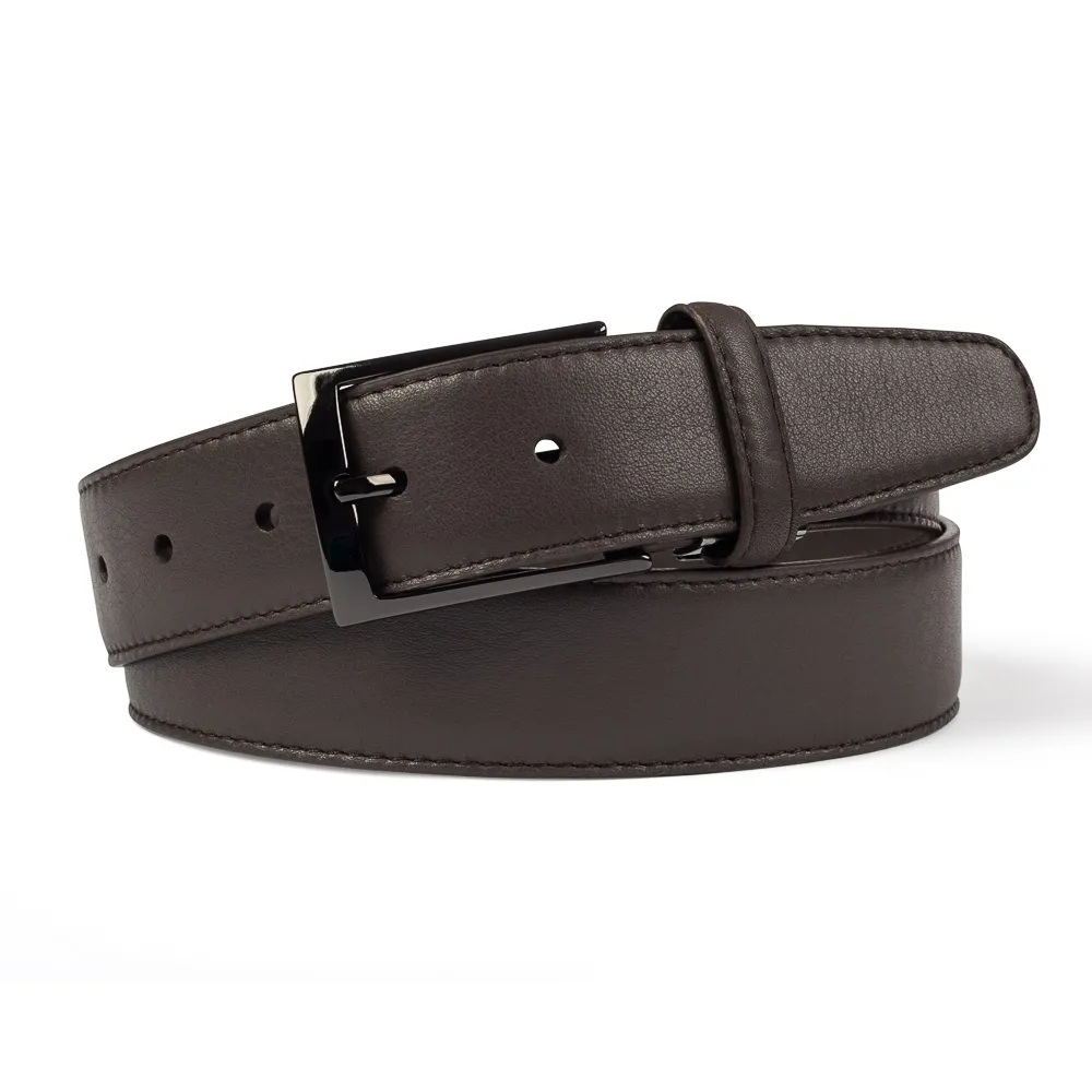 Ciemnobrązowy pasek do spodni ze skóry Nappa VAN THORN 95