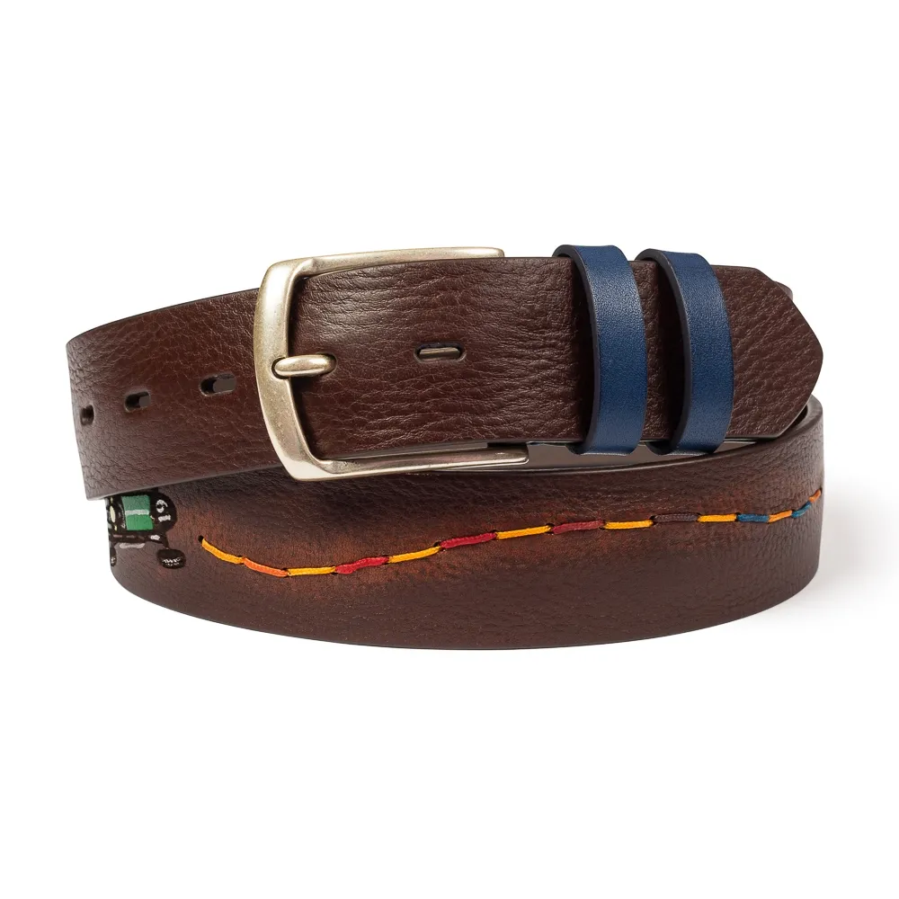 Pasek męski skórzany z wzorem Racing Tattoo brązowy 85