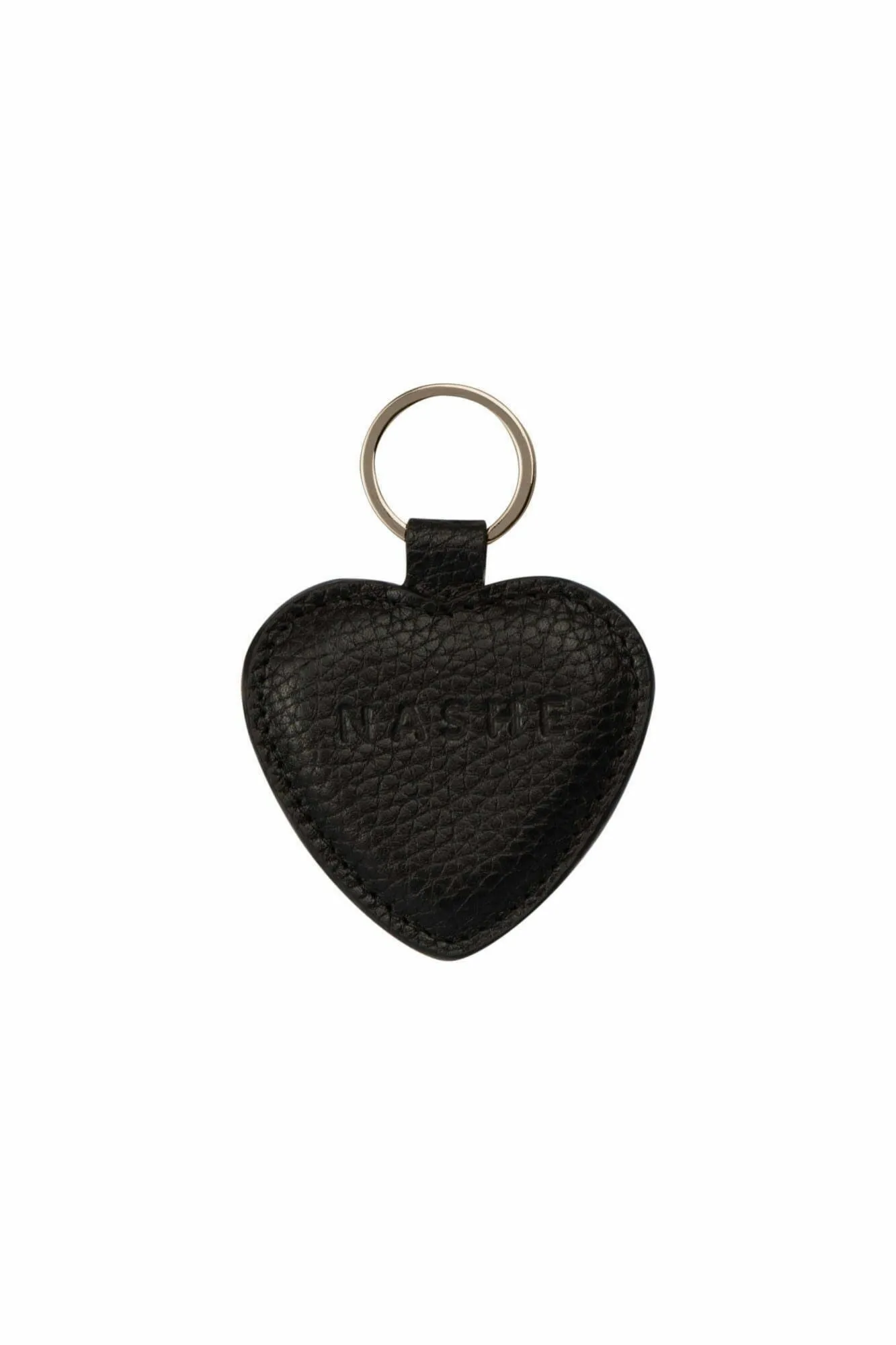 BRELOK SERCE - skórzany brelok do kluczy - czarny - srebro
