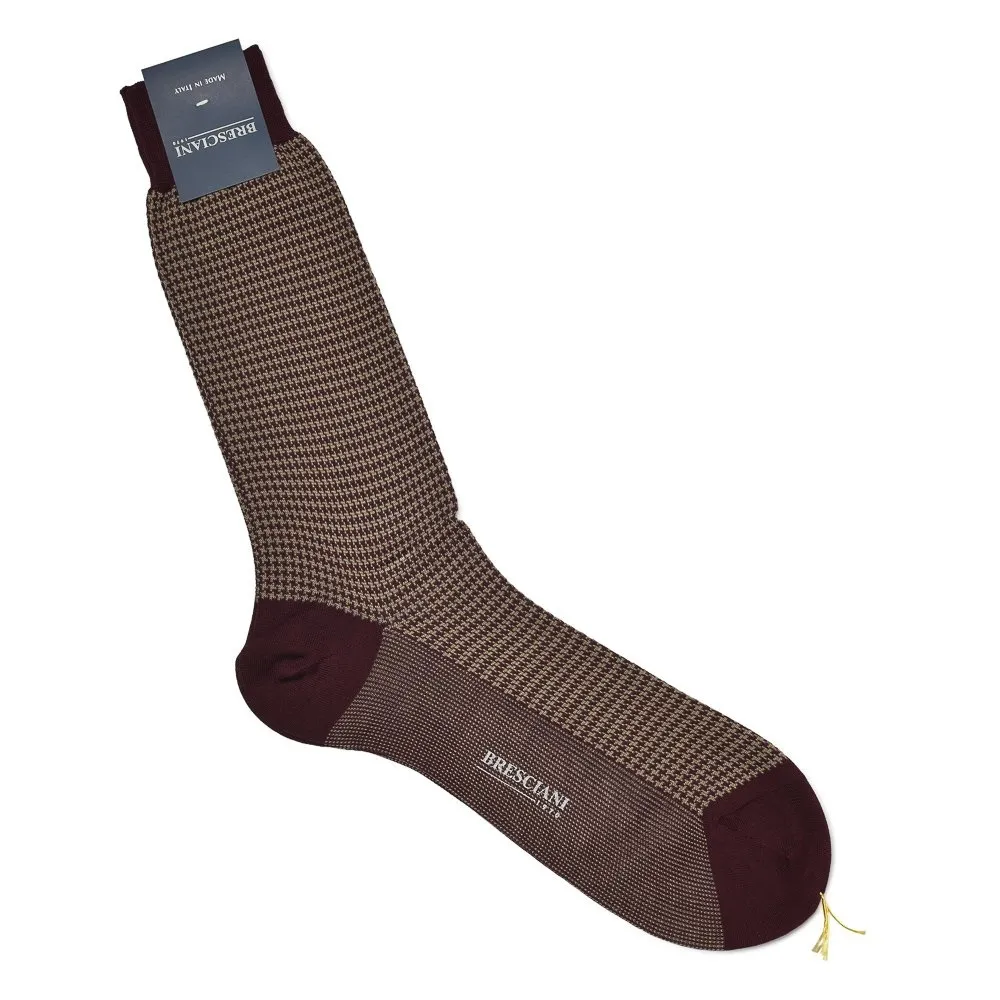 Bresciani bordowe bawełniane skarpetki męskie w granatowe kwadraty M