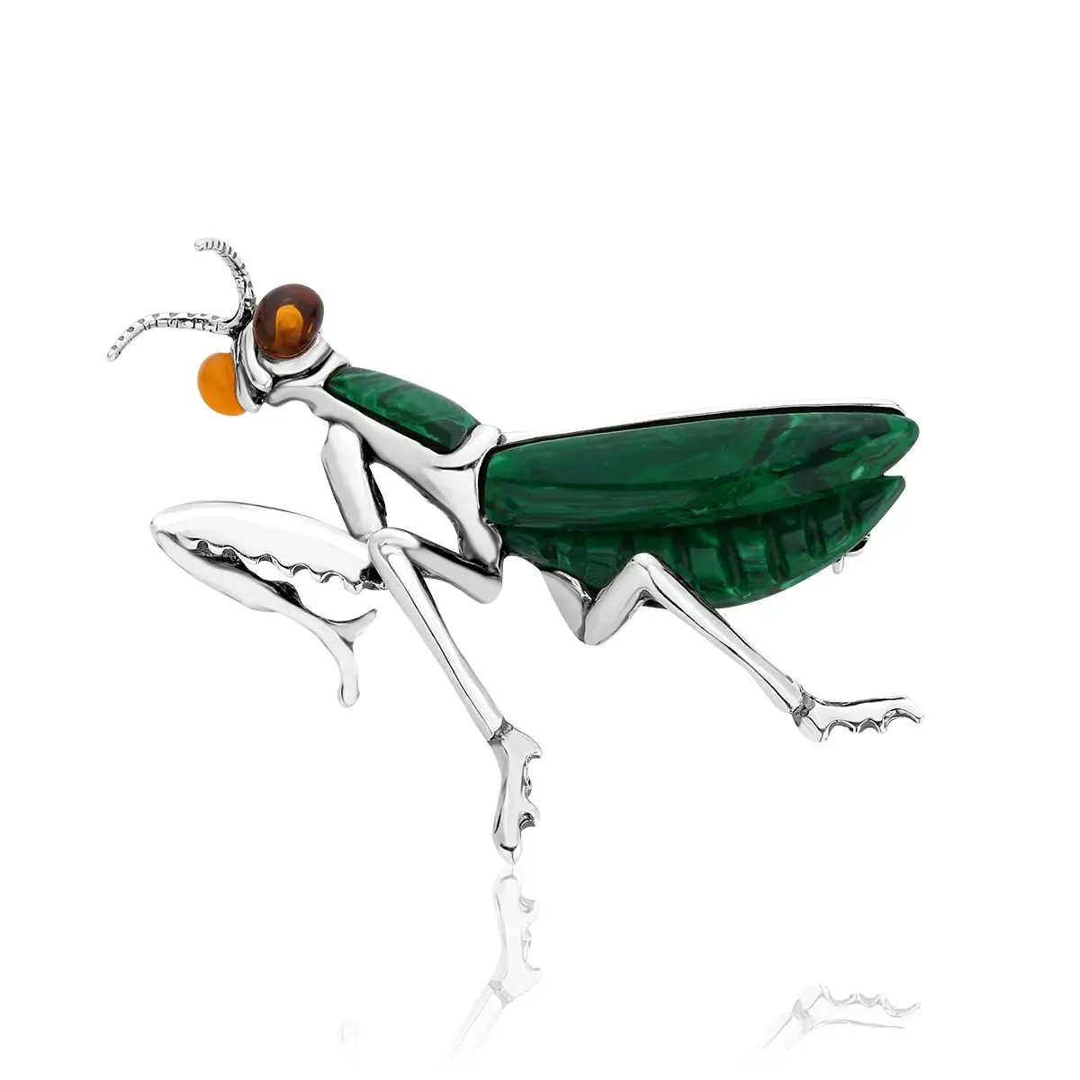 Broszka srebrna duży ptak muchołówka z bursztynem Flycatcher