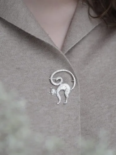 Niezwykła broszka w kształcie gałązki z czterema listkami. Wykonana ze srebra, następnie pokryta oksydą w taki sposób aby nadać listkom piękny złoto-brązowy kolor, typowy dla jesiennej aury. Długość broszki 6 cm, szerokość 4,2 cm. Oryginalna i niezwykle efektowna. Waga:10,3 gr. Nr katalogowy : BR24BR