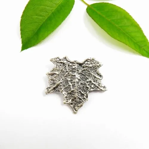 Broszka srebrna - Klonowy liść szary