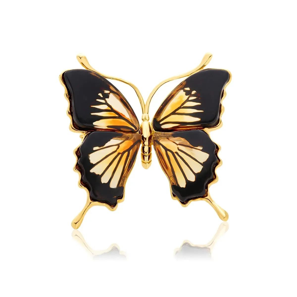 Broszka srebrna pozłacana motyl z bursztynem Big Butterfly Touch