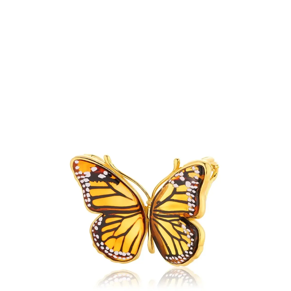Broszka srebrna pozłacana motyl z bursztynem bałtyckim Butterfly Monarch