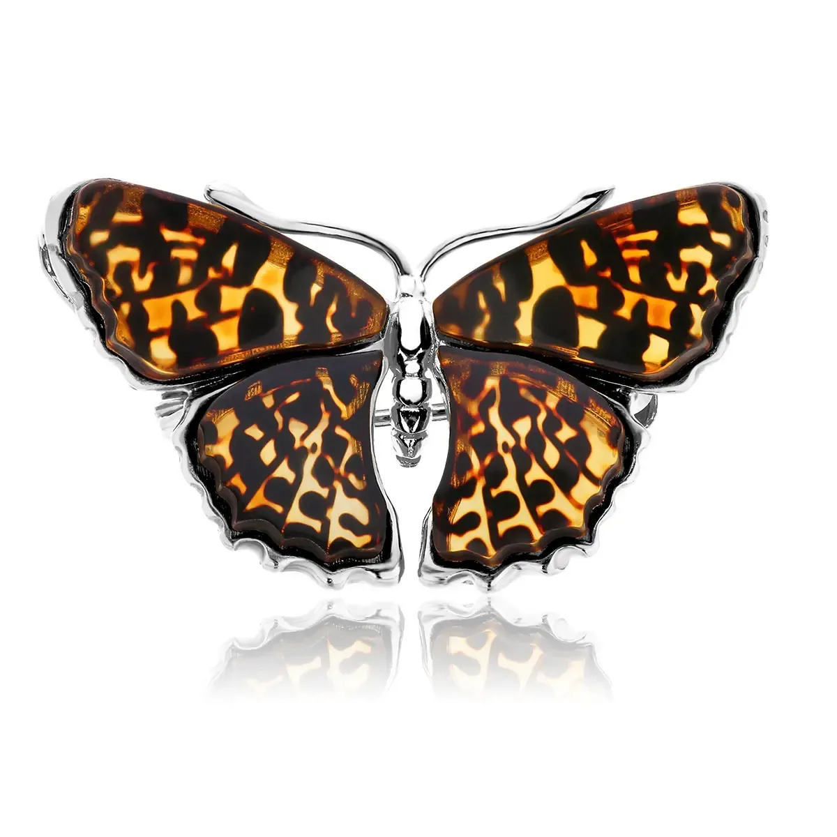 Broszka srebrna motyl z bursztynem Butterfly Rustle
