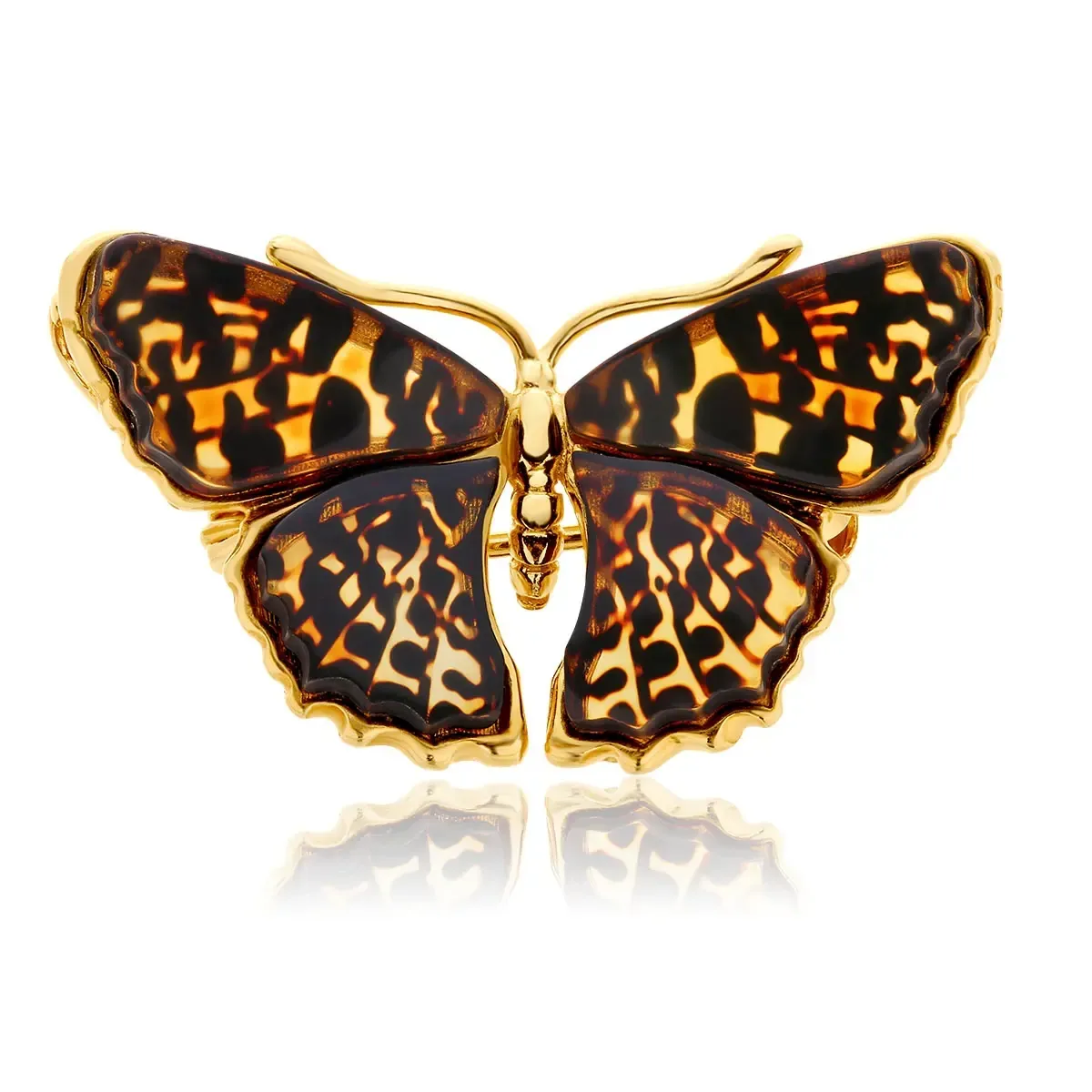 Broszka srebrna pozłacana motyl z bursztynem Big Butterfly Rustle