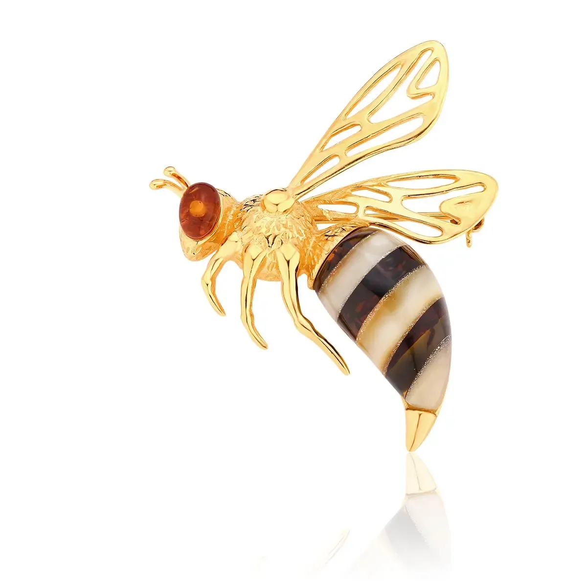 Broszka srebrna pozłacana pszczoła z bursztynem Bee