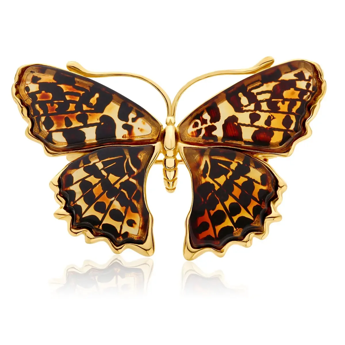 Broszka srebrna pozłacana motyl z bursztynem Big Butterfly Rustle