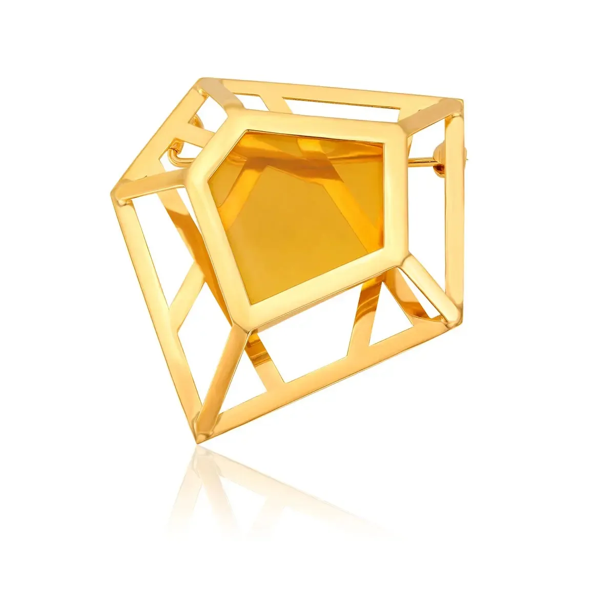 Broszka srebrna pozłacana z koniakowym bursztynem Polygon