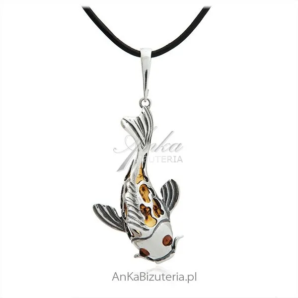 Oryginalna biżuteria z bursztynu i srebra - rybka