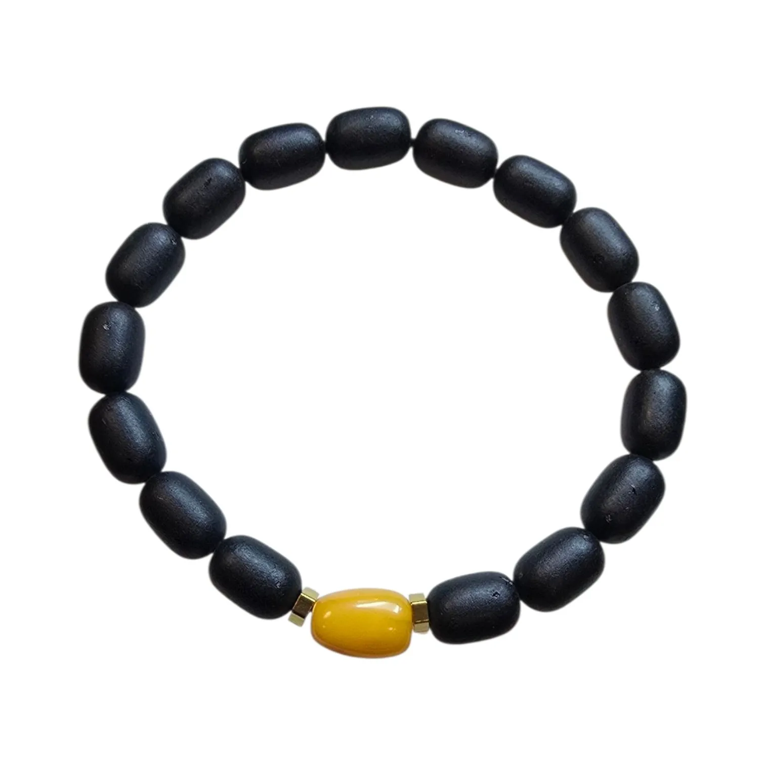 Bransoletkaz bursztynem wiśniowym i żółtym - stal szlachetna unisex