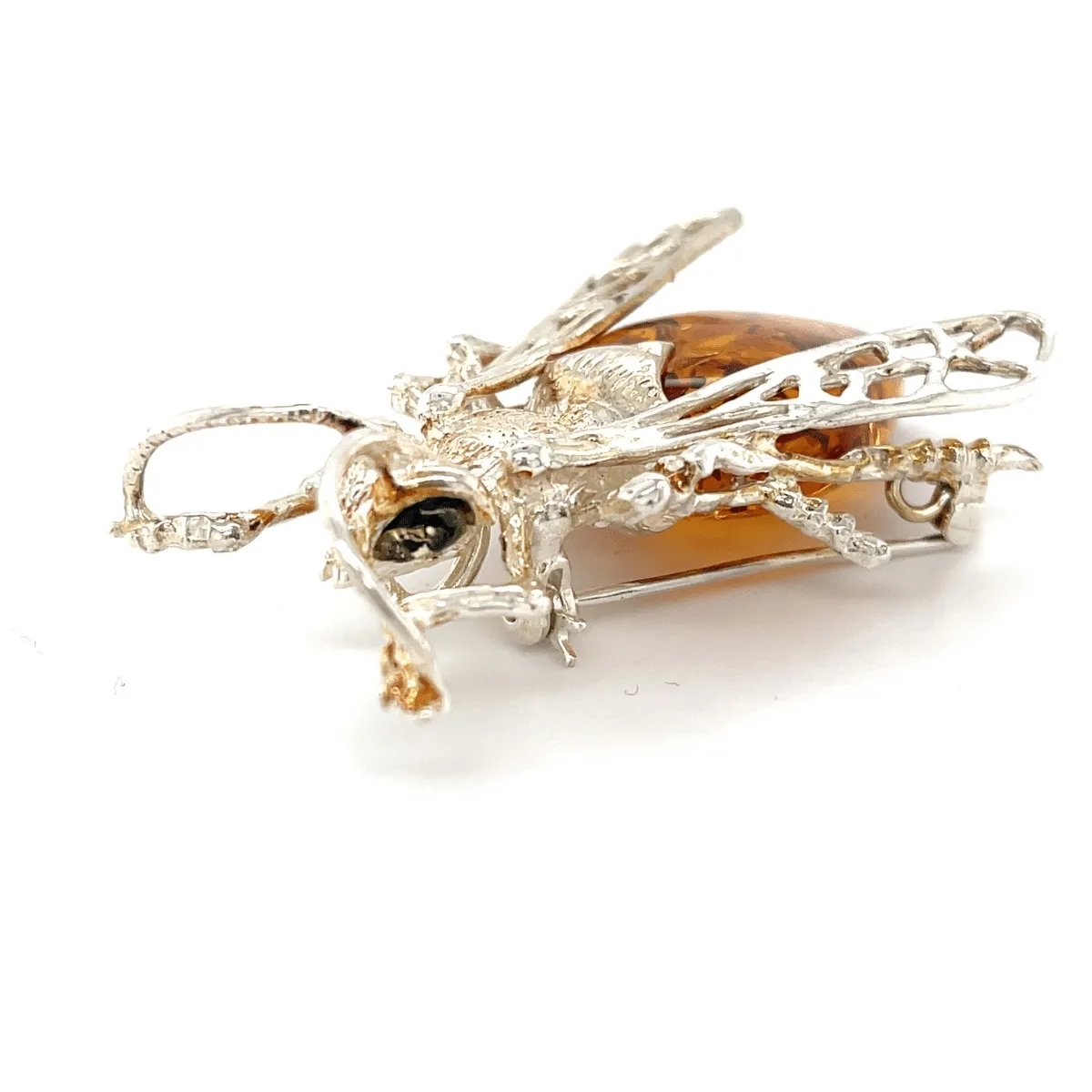 Broszko-zawieszka srebrna szerszeń z koniakowym bursztynem Hornet