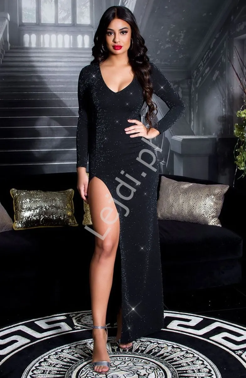 Czarna sukienka wieczorowa na sylwestra , studniówkę z brokatem 0195